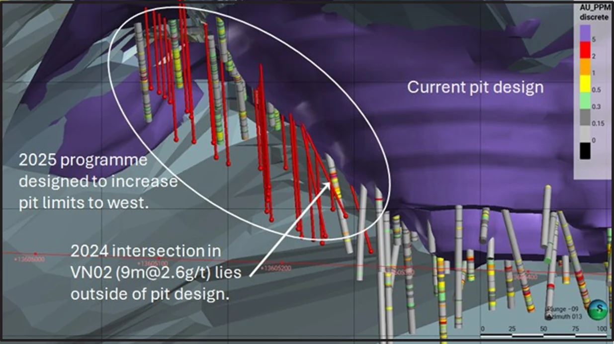 A feasibility study completed in 2023 demonstrated the viability of adding a leaching circuit to the existing gravity separation plant to further increase gold recovery. Drilling activities also demonstrated extensions to the known mineralization zones which could feasibly support cutbacks to the existing pit.