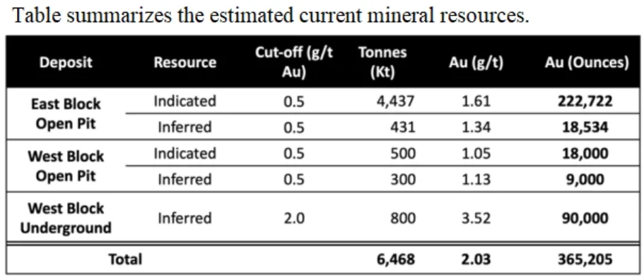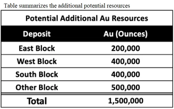 Detailed drilling and rigorous internal evaluation of results indicate the presence of 6.8 tons of mineable gold in the open pit of the East Block for a total depth of 180 m, with a mine life of 8 to 9 years. Upon further detailed drilling in the remaining blocks, the resources could potentially increase to 14 tons of mineable gold, with a mine life to about 15 years.