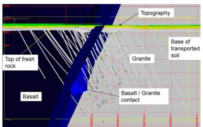 The West block trends NW-SE and covers an area of 32ha. West Block is located in the vicinity of the granite-supracrustal contact. Detailed mapping and observations from the drill cores indicate that the contact between supracrustal rocks and granite in curviplanar, with trend varying from WNW-ESE to NE-SW.